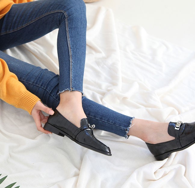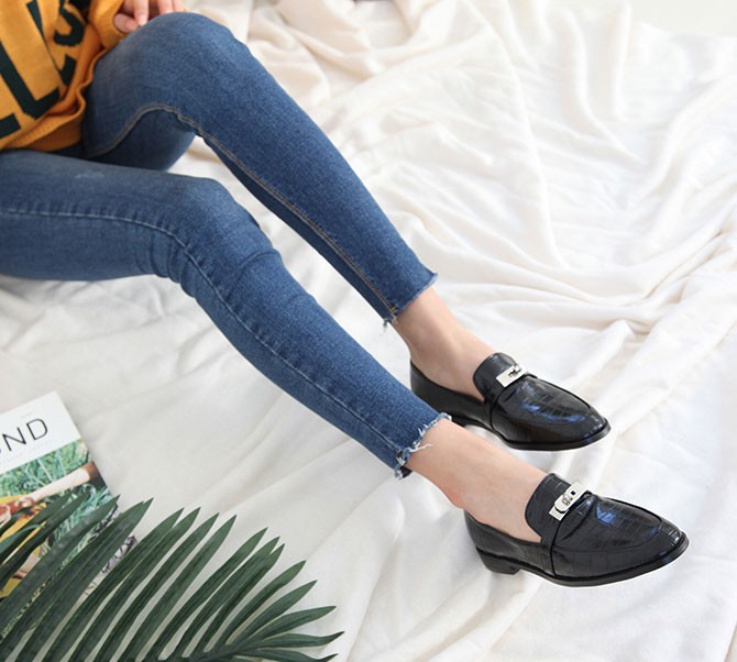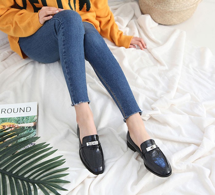 商品名:フラットシューズ レディース ローヒール 型押し 2017 秋 冬 ファッション 靴 婦人靴