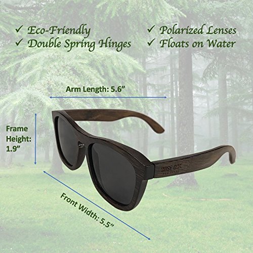 -. Feature : EXCELLENT CRAFTSMANSHIP: Premium quality, eco-friendly, unisex sunglasses made from 100% bamboo - simultaneously light weight and incredibly durable. 100% top-quality bamboo case included for FREE. / CLASSIC STYLE WITH UNIQUE TOUCHES: Wayfarer style frames with uniquely designed keyhole nose (keeps frame from slipping down your nose). Designed to FLOAT so you will never lose your glasses on the water again. / POLARIZED HD LENSES: Top quality 1.1mm polarized lenses with UV 400 protection (blocks 100% of UVA & UVB waves) and 13% transmittance. Polarization neutralizes glare from the sun, allowing you to see more clearly regardless of brightness and reflections. / DOUBLE SP.R.ING HINGES: Keeps the sunglasses in place regardless of face size and shape. Double sP.R.Ing hinges also help prevent damage to the frame by allowing the arms to hyperextend15 degrees. / GUARANTEED QUALITY: We are extremely confident that you will love your new sunglasses. If you are not happy with the product in any way, we will make it right by offering you a full refund.