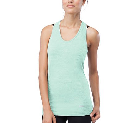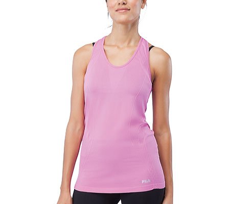 Sleeveless silhouette. Razorback. Straight hemline. 57% polyester, 35% nylon, 8% spandex. Machine wash cold, tumble dry low. Imported.