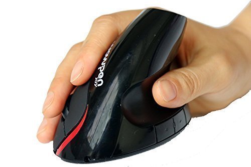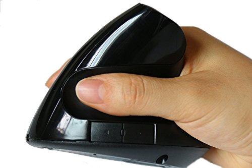 The 2.4G wireless vertical ergonomic optical mouse is designed to reduce forearm twisting and the resulting repetitive stress and pain. The vertical "handshake" position encourages a neutral wrist and arm alignment for greater comfort and better health. No finger contortions are needed to operate the easy-to-reach buttons. The thumb rest has been reshaped to provide even more comfort over earlier versions, and the addition of two navigational thumb buttons allow for smoother, faster web browsing.