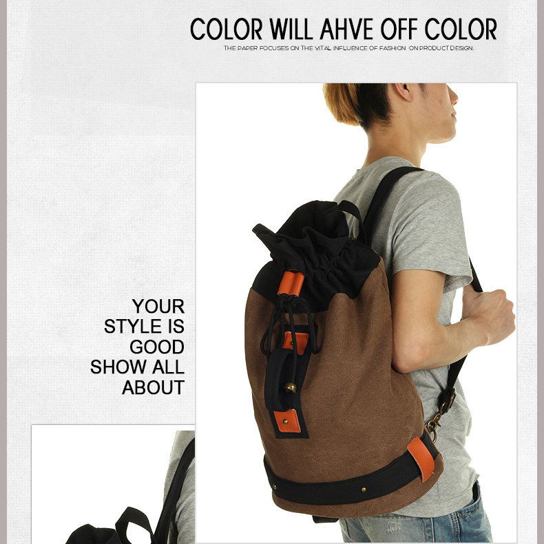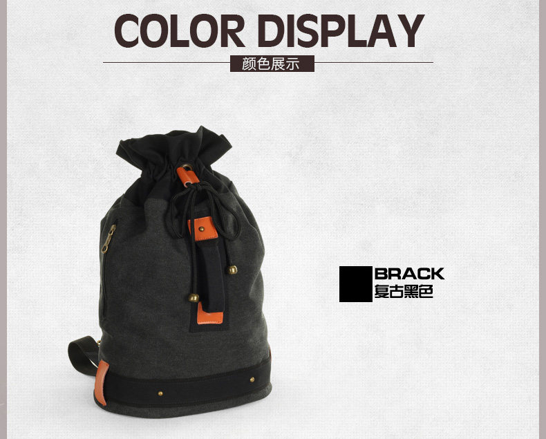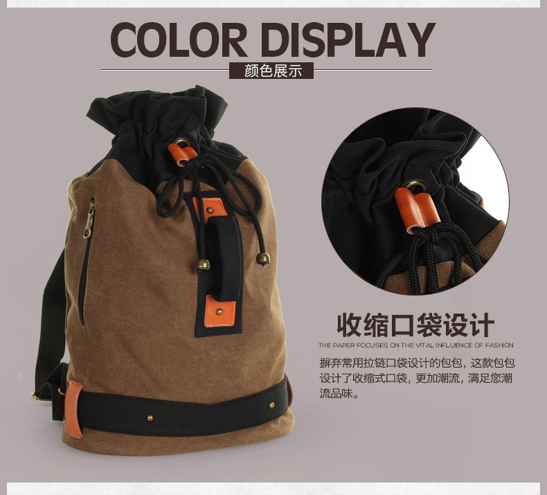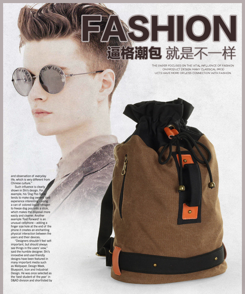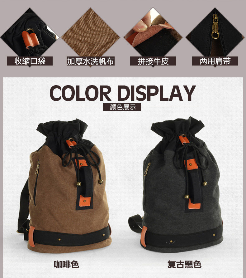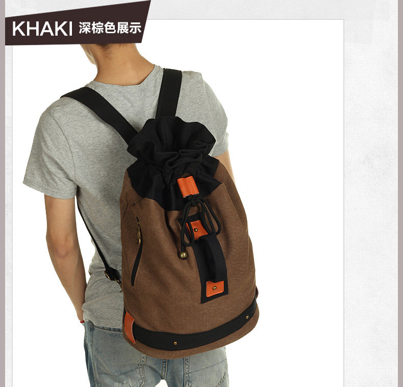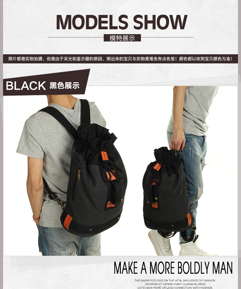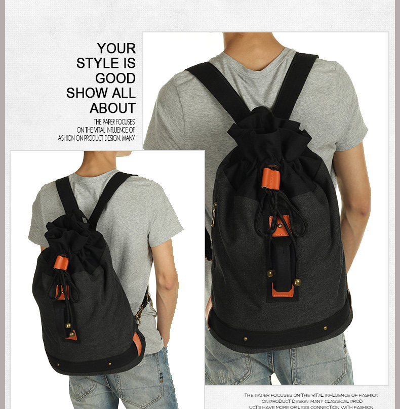 墨一韩版潮流帆布包男包休闲双肩包中学生背包书包户外运动桶包