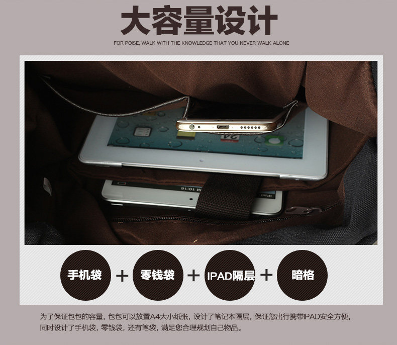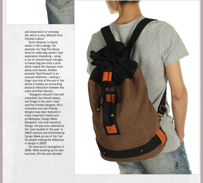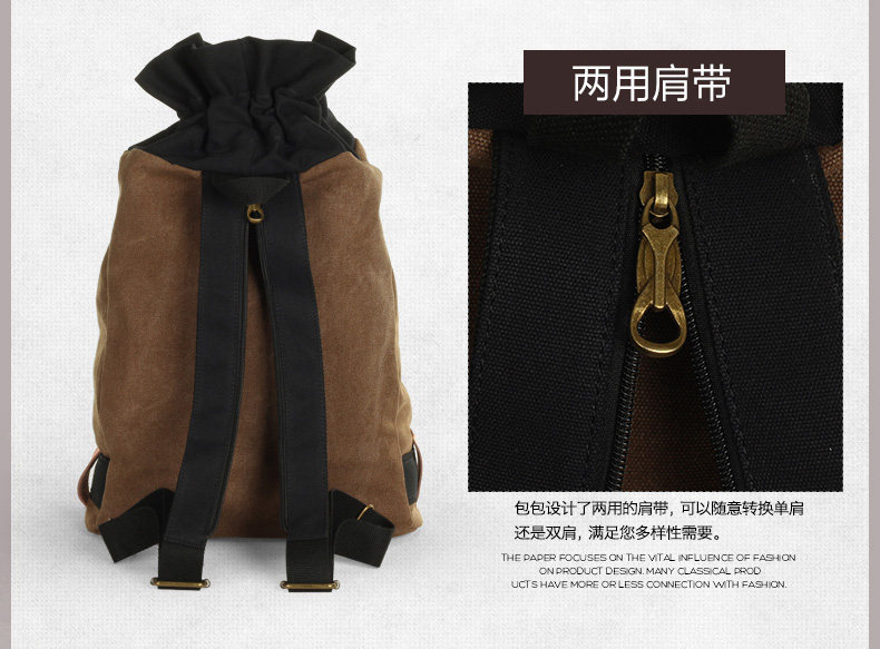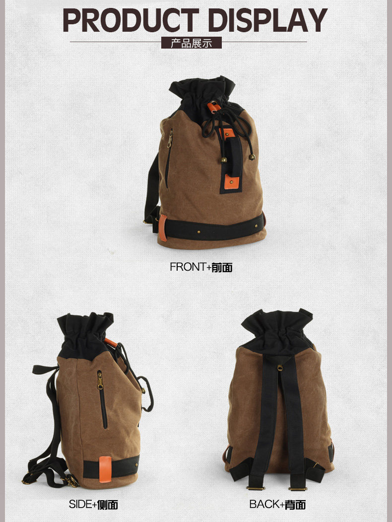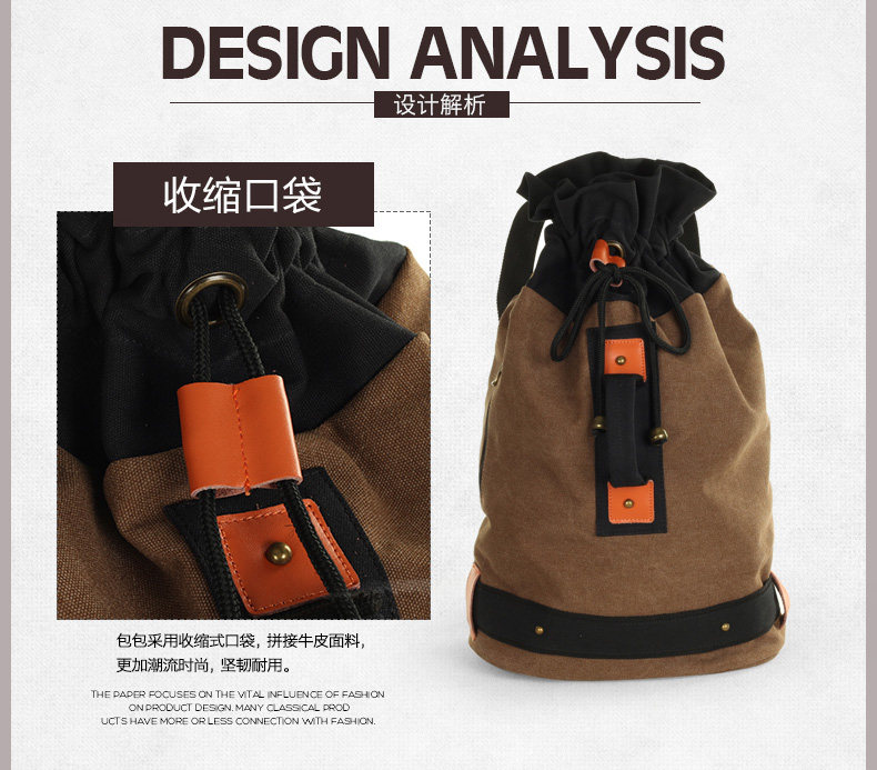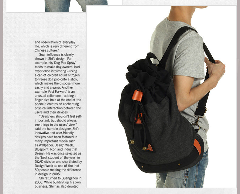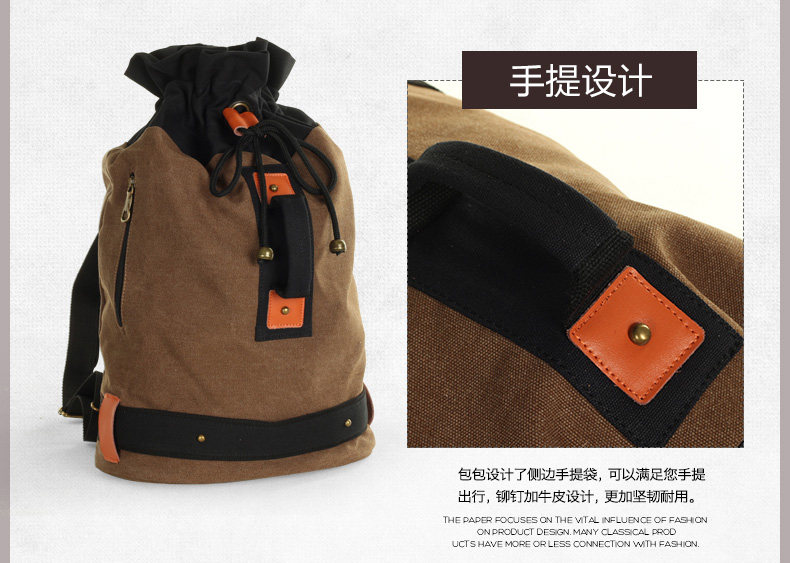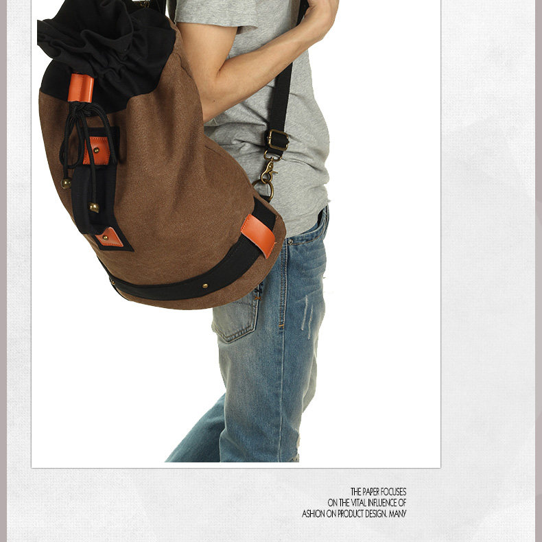 墨一韩版潮流帆布包男包休闲双肩包中学生背包书包户外运动桶包