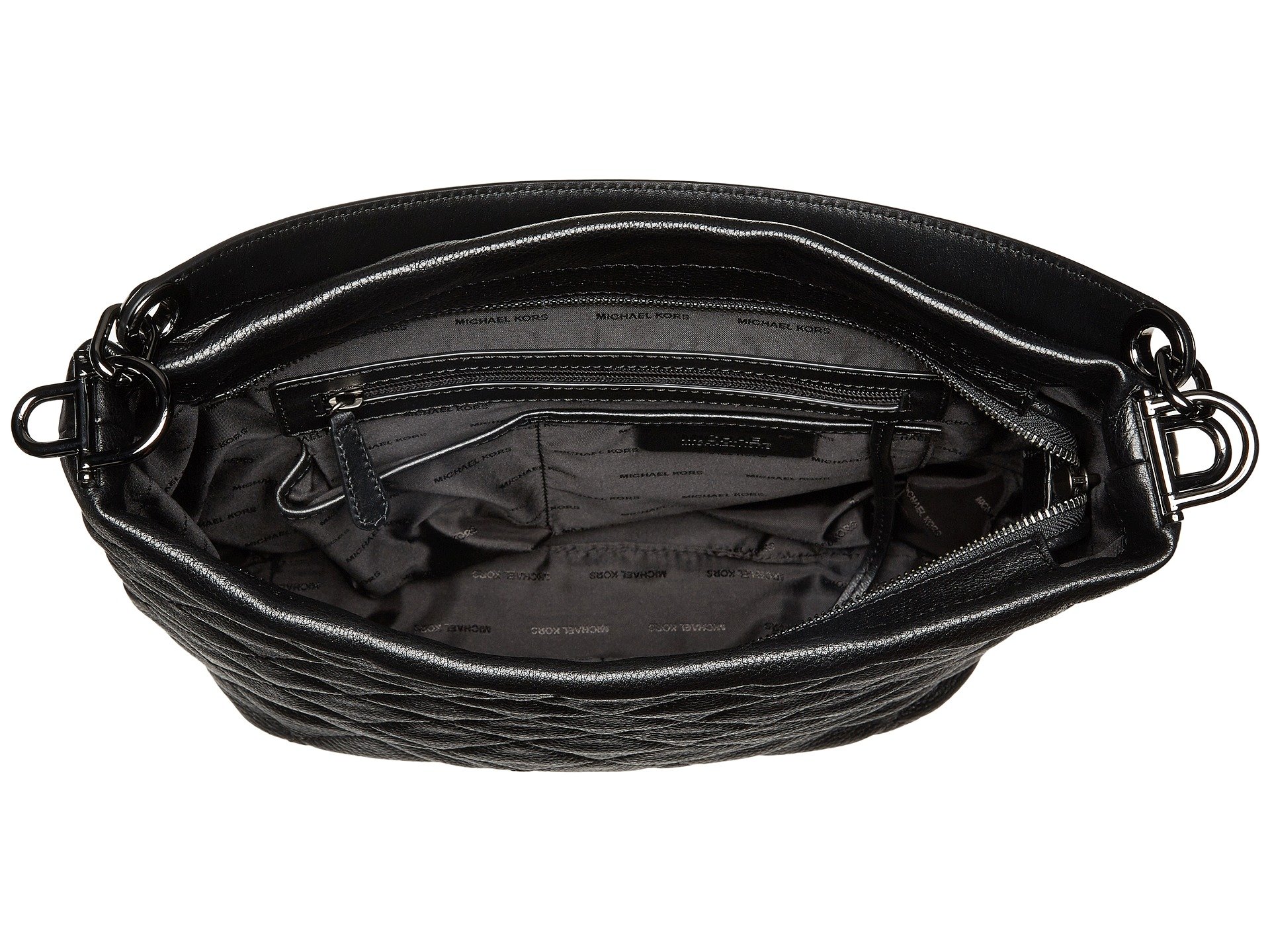 | Product Information SKU: #8834428The quilted elegance of the MICHAEL Michael Kors™ Loni Large Shoulder is a marriage of chic style and functionality that you cannot pass up!Large tote-style shoulder bag made of lightly pebbled leather in a classic quilted pattern.Single leather shoulder strap, with a detachable crossbody strap.Signature logo hardware.Rear zip pocket.Ultra organized interior features a back-wall zip pocket, two slip pockets, and a key clasp.Flat base to provide upright structure.Imported.This product may have a manufacturer's warranty. Please visit the manufacturer's website or contact us at warranty@support.zappos.com for full manufacturer warranty details.Please note, the hardware color and interior lining may differ from the color shown in the photo.Measurements: Bottom Width: 9 1?2 in Depth: 4 1?2 in Height: 11 in Strap Length: 15 in Strap Drop: 7 in Handle Length: 15 in Handle Drop: 7 in Accessory Strap Length: 38 in Accessory Strap Drop: 19 in Weight: 1 lb 10 oz |