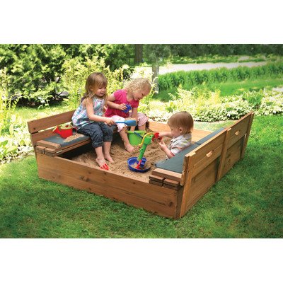 Studio : Badger Basket Publisher : Badger Basket Binding : Toy Product Description 9988P Features: -Bottomless construction helps with drainage and allows you to adjust sand depth. -Made of heat treated and stained cedar wood. -Sand not included. -Sandbox with foldout benches and padded seats. Product Type: -Sandbox. Finish: -Natural. Material: -Wood. Hardware Material: -Stainless steel. Dimensions: -Width of seats between the center and edge bars: 14.5". -When the benches are unfolded for play, open sand area: 31" x 44.75". -Height from ground to top of seat back with benches up: 16.5". Overall Width - Side to Side: -46.5". Overall Length - Front to Back: -46.5". Overall Depth - Top to Bottom: -9.5". Sandbox Interior Depth - Top to Bottom: -9.5". Sandbox Interior Width - Side to Side: -44.75". Sandbox Interior Length - Front to Back: -44.75". Overall Product Weight: -49 lbs. 0