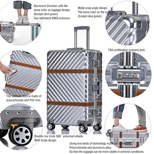 -. Feature : Polycarbonate shell, aluminum alloy frame / Wheel brake system, quick disassembly wheel design, Double row mute 360 ° universal wheels / PVC decorative stripes, shell anti-scratch processing / 2 TSA combination locks (not with key)