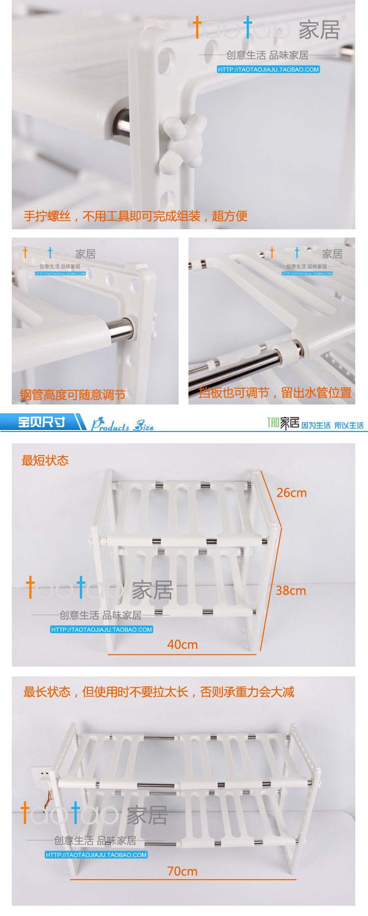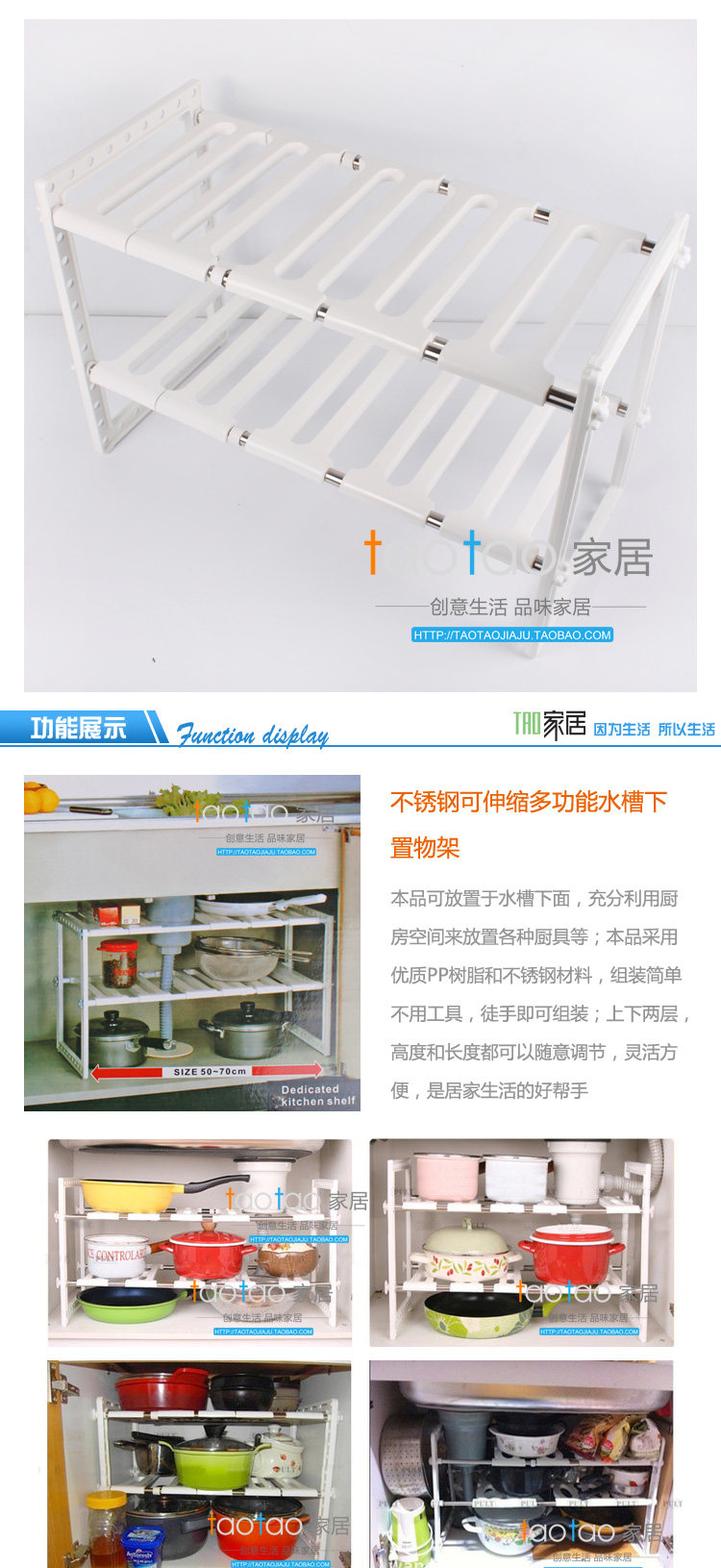 Overview: elegant appearance, compact and durable, capable of storing dishes and other kitchen debris. save space! Under the sink is installed to prevent the effective use of space, home storage is a good helper, it can also do other household items finishing shoe rack storage rack!