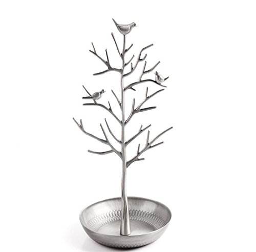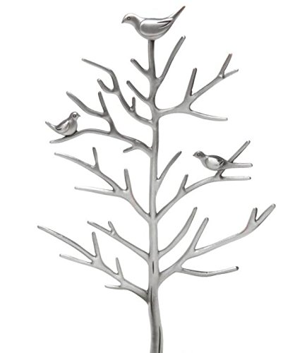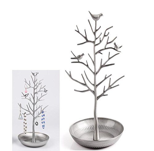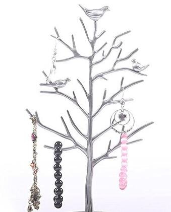 Silver Birds Tree Jewelry Stand Display Earring Necklace Holder Organizer Rack Tower-silver