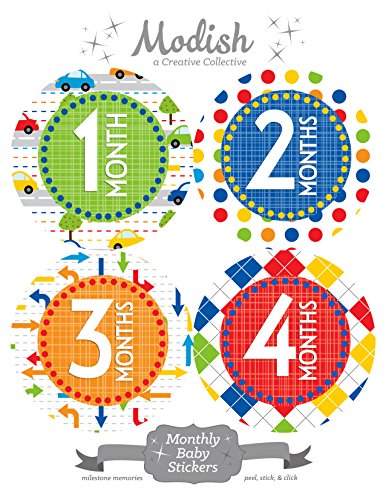 12 Monthly Baby Stickers, Cars, Primary Colors, Boy, Baby Belly Stickers, Monthly Onesie Stickers, First Year Stickers Months 1-12, Red, Blue,...