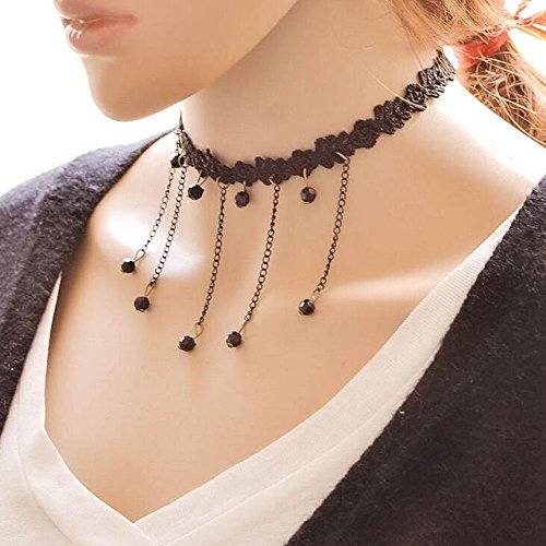 -. Feature : Chic pendant necklace with bar. Black color. / Size: Free Size (it can be adjusting the size) / Material: Lace and bead / Jewelry necklace will keep color. Suitable for women and girls on party, event, casual and other special occasions. / If you want more color or style, please choose in my store from click our name "A&C's Beauty Girl", we have so many different style alloy or feather jewelry like earrings, necklace,headband, hair chain and so on. Hope you have a good shopping tour.