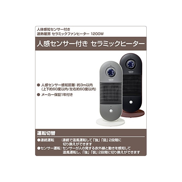 원본상품명: 山善(YAMAZEN) 人感知センサ付セラミックヒタ(センサ運機能付)(ダイヤルスイッチ) ブラウン DSF-N12(T)