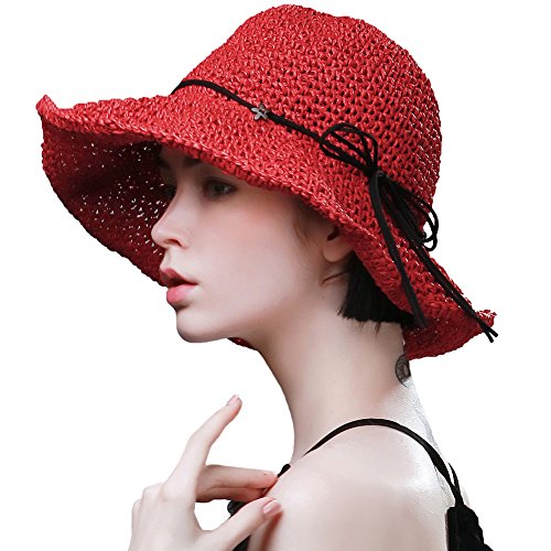-. Title : (シッギ)Siggi 取り外すあご紐 サイズ調節可 折りたたみ可 フリーサイズ メッシュ おしゃれ 女優帽子 麦わら帽子 ストローハット レディース 春夏 つば広 リボン UVカット 旅行 ゴルフ 自転車 56-58CM