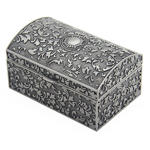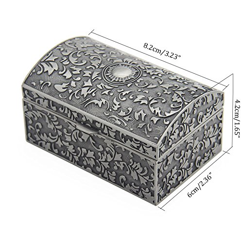 Vintage Metal Jewelry Box Small Trinket Storage Organizer Box Chest Ring Case for Girls Women, Tin Color