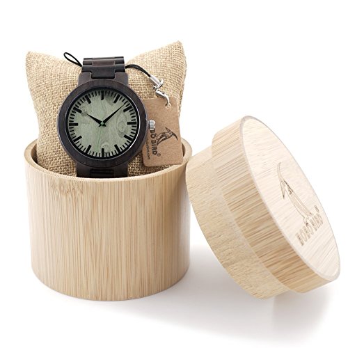 -. Title : BOBO BIRD Men's Top Brand Design Black Sandal Wooden Bands Quartz Wood Watch in Wood Box