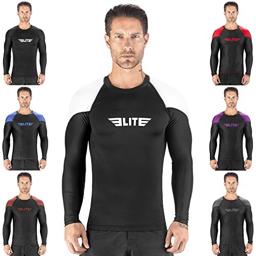 -. Feature : MULTIPURPOSE - Your ELITE SPORTS FULL LONG SLEEVE RASH GUARD excels across a wide range of sports, including MMA, CROSS TRAINING, BJJ, BOXING, KICKBOXING, and even SURFING. / AVOID THE BUILDUP OF BACTERIA - Your men's rash guard comes with antimicrobial and antifungal treatment, meaning you'll never have to concern yourself with nasty bacterial growths. / DURABLE & COMFORTABLE - The rash guard has FLATLOCK STITCHING and is made from a blend of polyester and spandex, you can rest assured your NO-GI rash guard will last a long time. Fully sublimated graphics will not crack, fade, peel, or irritate your skin, giving you comfortable wearing experience. Its stylish and fashionable design will also make you stand out while wearing it. Anti-slip bands at the waist & sleeves will also prevent the rash guard from riding up on you. / BOOST YOUR PERFORMANCE AND RECOVERY - The compression material allows for better blood flow. Improving your performance and recovery time. In addition, honeycomb material was added under the arm and back for added strength. / IBJJF APPROVED - This is an IBJJF tournament approved rash guard. If you're into NO-GI Jiu Jitsu, this is the perfect rash guard for you. Available sizes range from small to 2XL and can fit both sexes. This rash guard is suitable for IBJJF tournaments and any other martial arts tournaments. The BJJ rash guard has a very stylish design that will look great on any athlete. IF YOU HAVE QUESTIONS ABOUT SIZING, PLEASE WRITE YOUR QUESTION IN THE CUSTOMER QUESTIONS & ANSWERS SECTION BELOW.