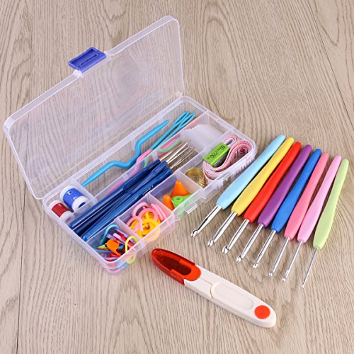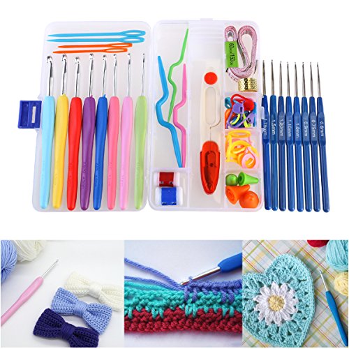 Crochet hook set 16pcs Soft Grip Handle Aluminum Crochet Hooks Knitting Needles (Random Color)