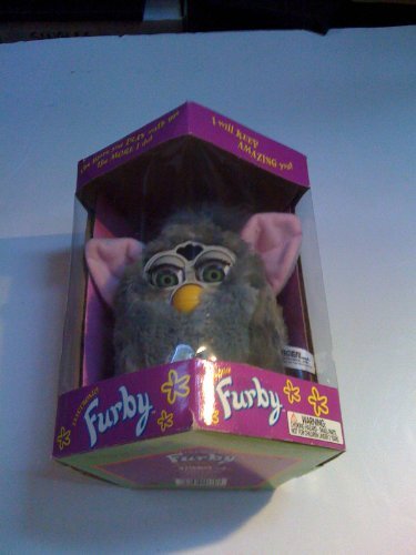 -. Binding : Toy -. Brand : Furby -. Feature : Ages 6 and up / Uses 4 AA Batteries / I can communicate with other Furbys / I wiggle my ears, blink my eyes and move my mouth. -. Label : Tiger Electronics -. Manufacturer : Tiger Electronics -. Model : 70-800-0001GBTI-04 -. PackageQuantity : 1 -. ProductGroup : Toy -. ProductTypeName : TOYS_AND_GAMES -. Publisher : Tiger Electronics -. Studio : Tiger Electronics -. Title : Furby - Original All-Grey with Pink Inner Ears/White Outer Ears and Brown Eyes (1998)