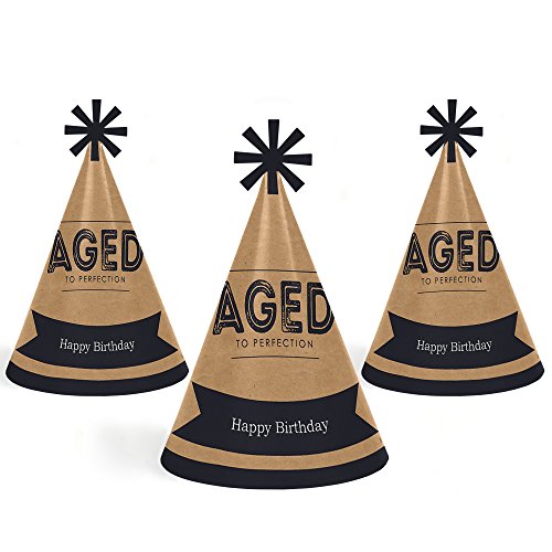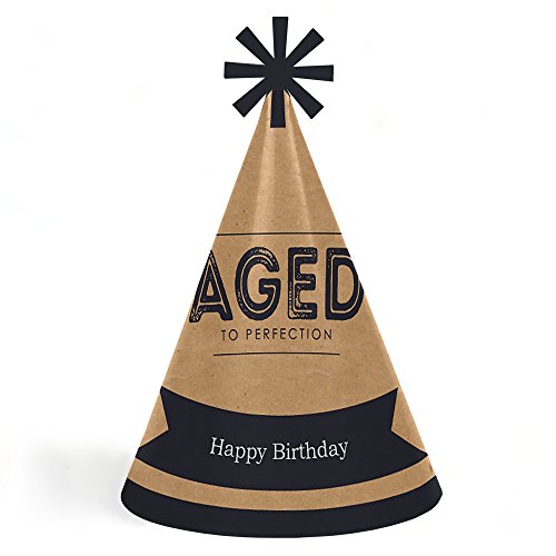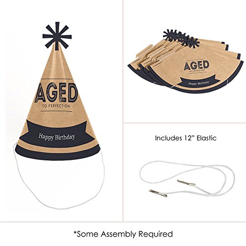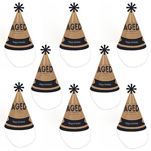 -. Title : Milestone Happy Birthday - Dashingly Aged to Perfection - Cone Happy Birthday Party Hats for Kids and Adults - Set of 8 (Standard Size)