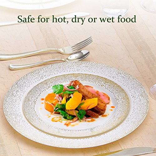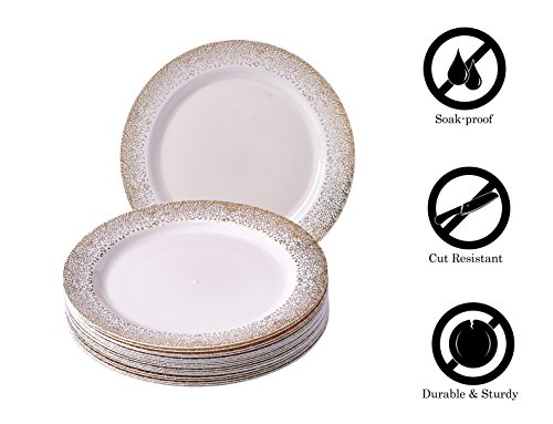 Benefits: Made from the finest plastic on the market. All our products undergo strict quality control to meet the high standards of our customers. Our non-toxic disposable plastic plates are safe to use anytime and anywhere. Great value! These premium disposable plates are heavyweight and reusable for future party events. These plates will enhance the appearance of your food displays and will create the perfect setting for your event. This is a hassle-free alternative to using real china dishes and worrying about rental fees or broken pieces. Our disposable tableware collection will enhance your party and turn it into a magnificent and memorable experience. Wash care instructions: You may wash these disposable plates with soap and warm water. Please note that these may only be washed by hand and do not put them in your dishwasher. These disposable plates are not microwave safe and neither dishwasher safe.