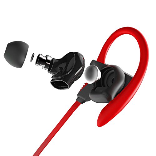 Feature : SWEAT IN STYLE: The winner in sports audio features innovative sweat proof covering and flexible ear hooks that stay in place no matter the physical activity / TOP QUALITY AUDIO: Hear richer and more natural sound from your smartphones, tablets, and audio devices / BLUETOOTH 4.1: The Latest Bluetooth 4.1 technology offers a faster, more energy efficient connection so you can listen to music for up to 4 hours. / CRYSTAL CLEAR COMMUNICATION: Featuring CVC Noise Cancellation technology, the integrated microphone lets you chat without external noise or other interference / ABSOLUTE WIRELESS STABILITY: Built-in ceramic antenna provides enhanced audio quality and more stable Bluetooth pairing, meaning minimal lost connections