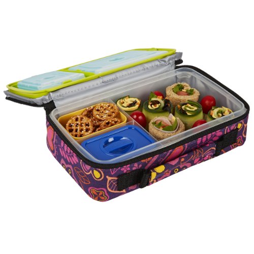 Fit & Fresh Kids Bento Lunch Kit with Insulated Bag and Ice Packs, Woodstock
