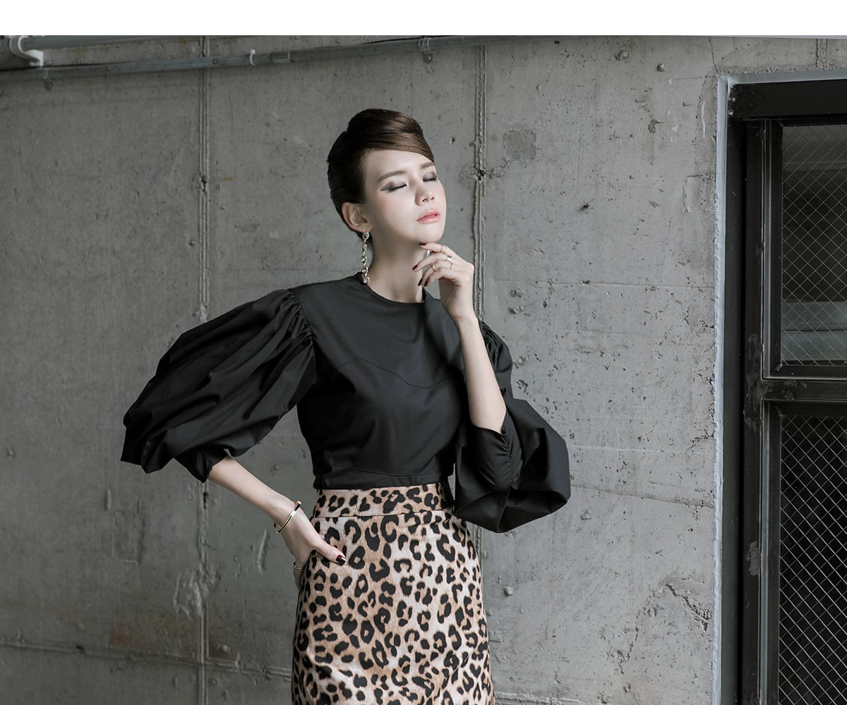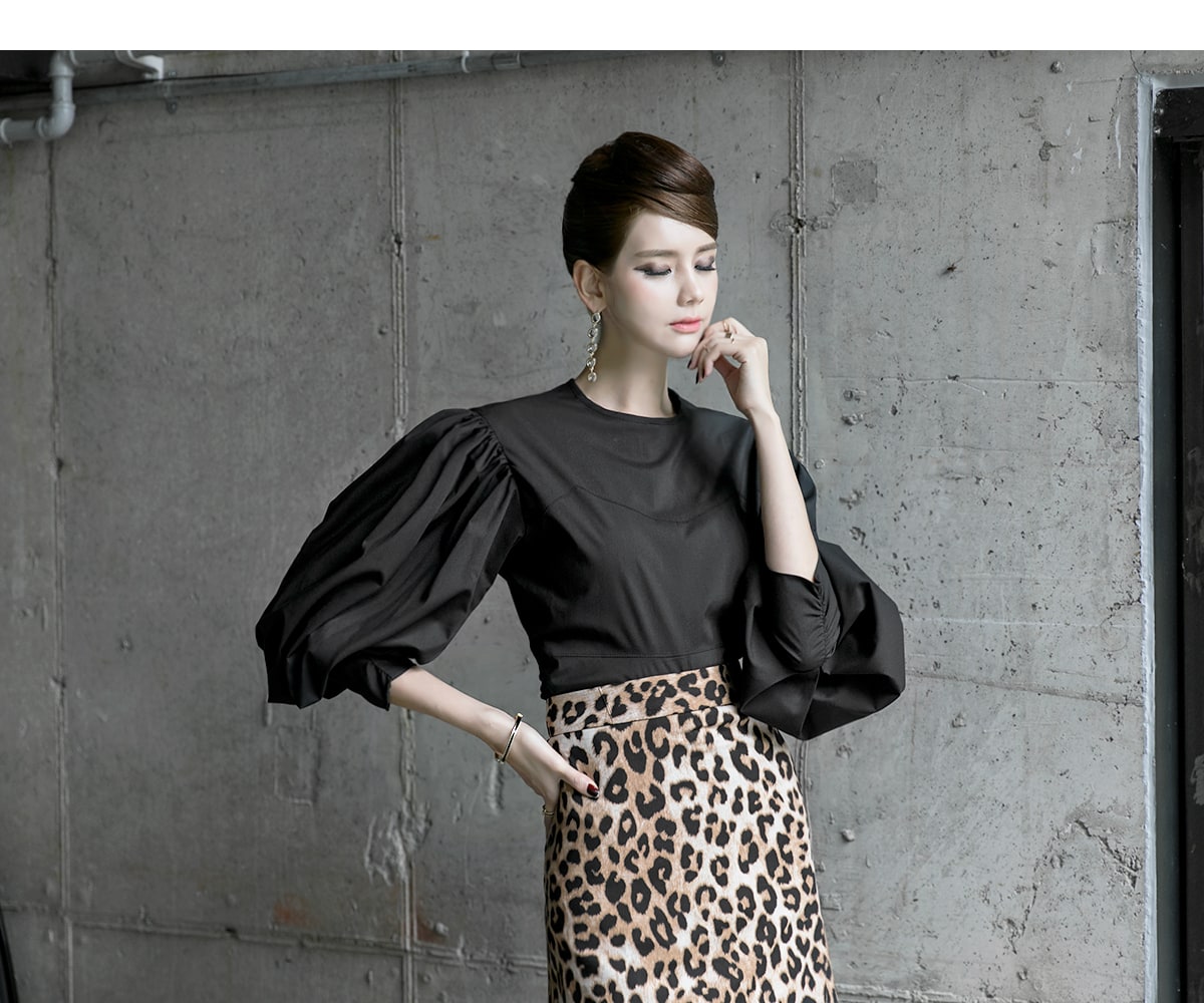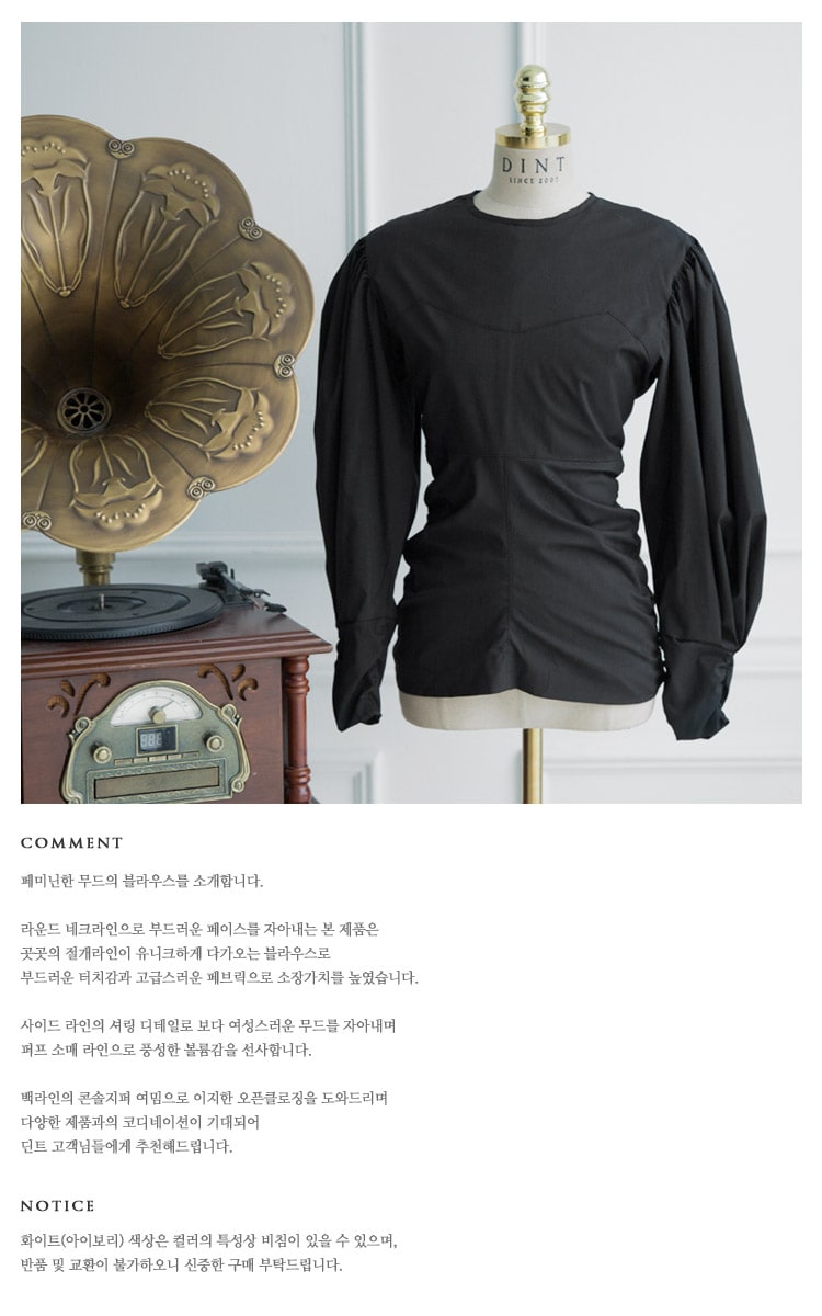 B2310 오퍼 볼륨 셔링 블라우스 Black