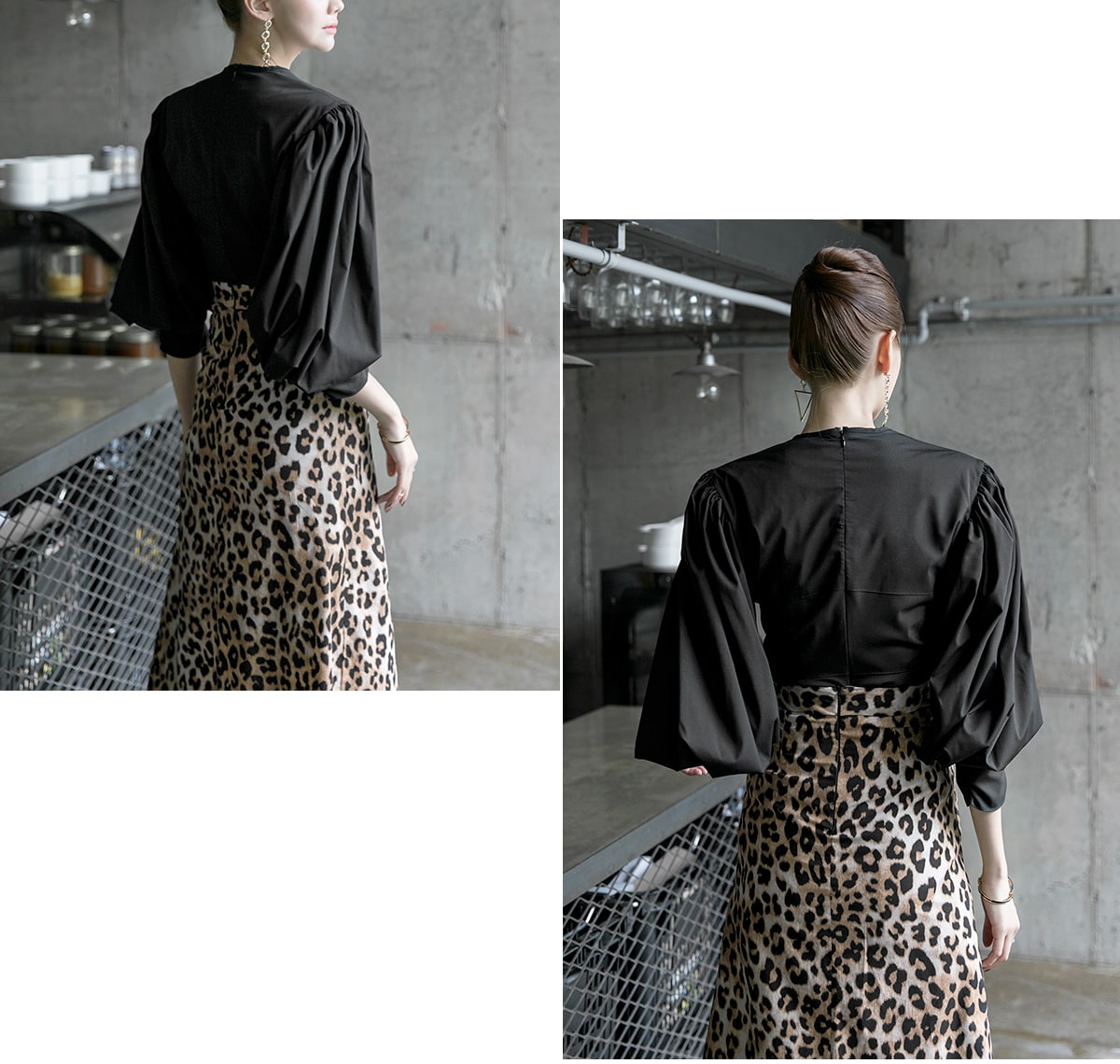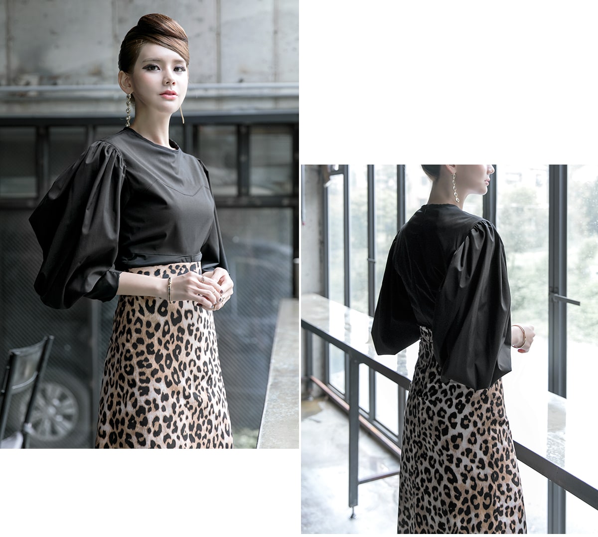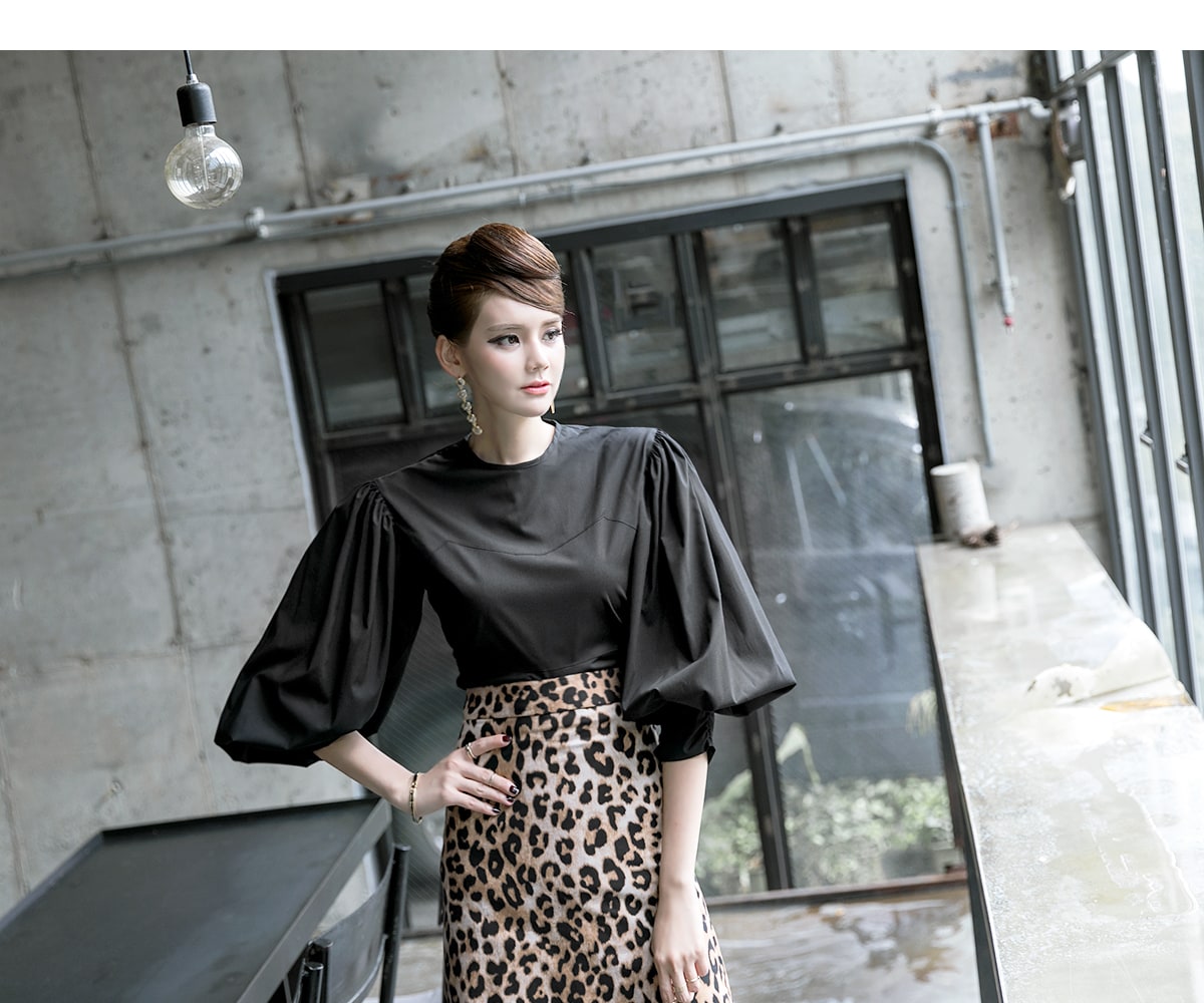 B2310 오퍼 볼륨 셔링 블라우스 Black