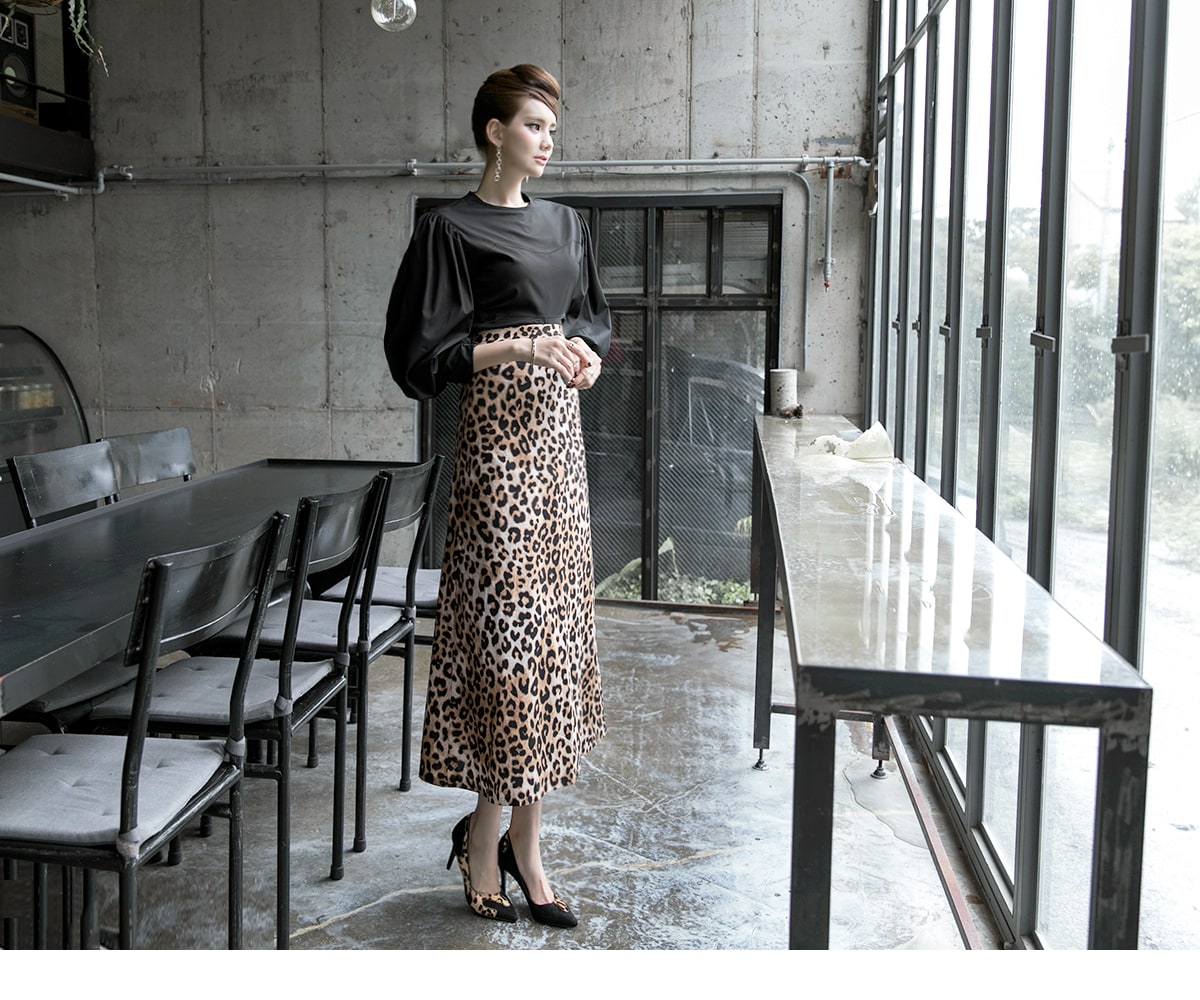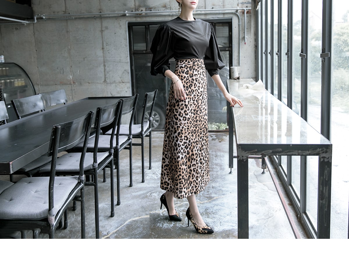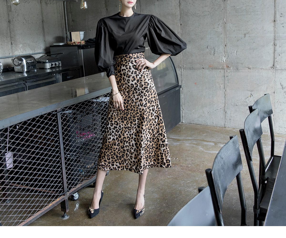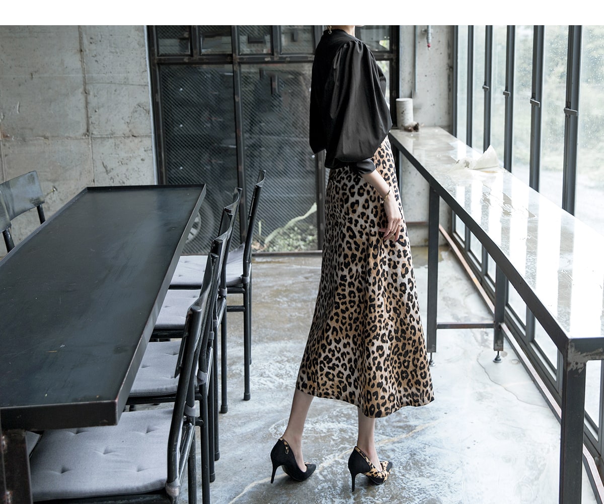 SK1764 에인 레오파드 롱 스커트 Brown mix