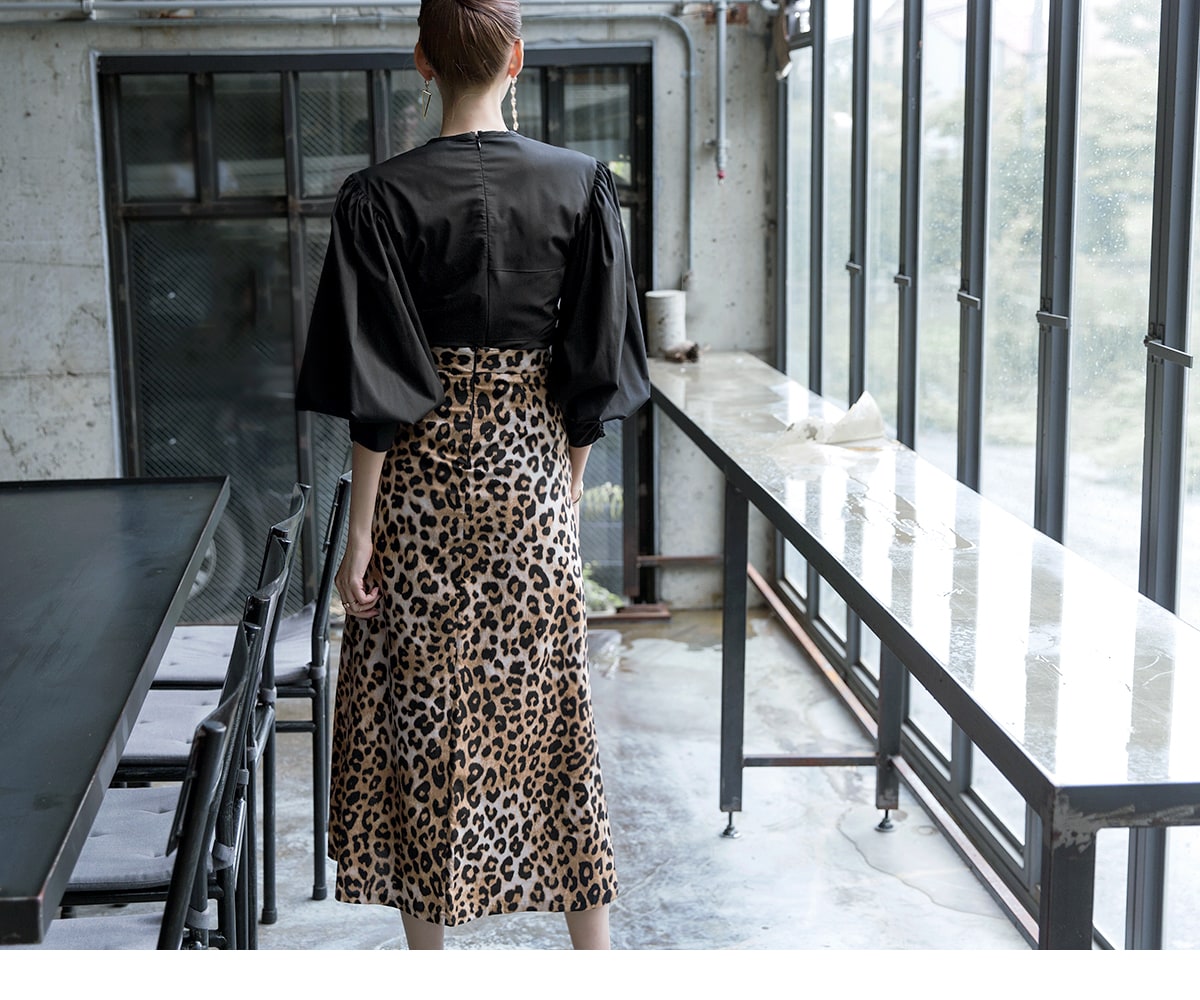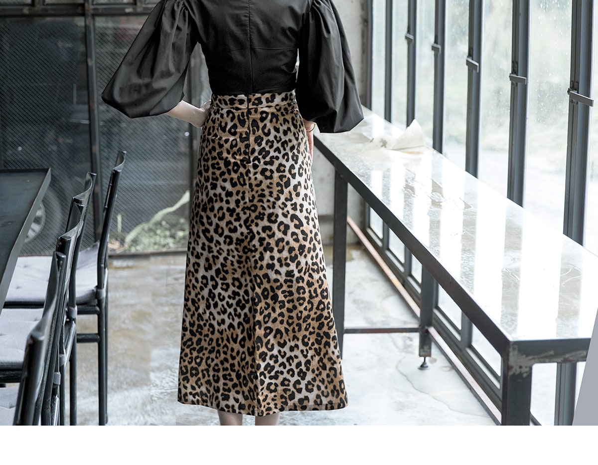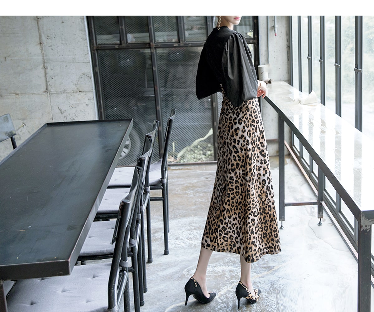 SK1764 에인 레오파드 롱 스커트 Brown mix