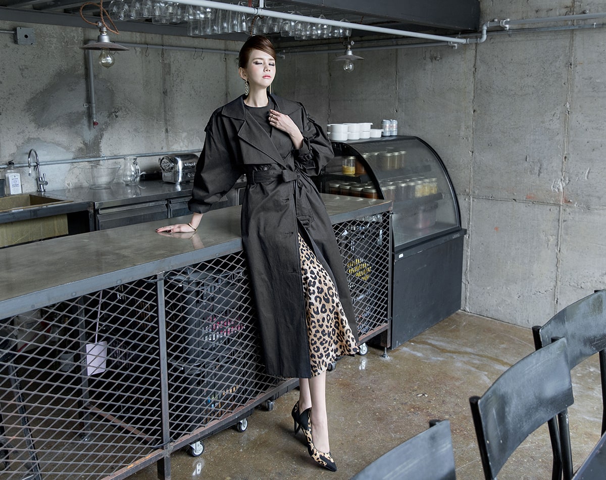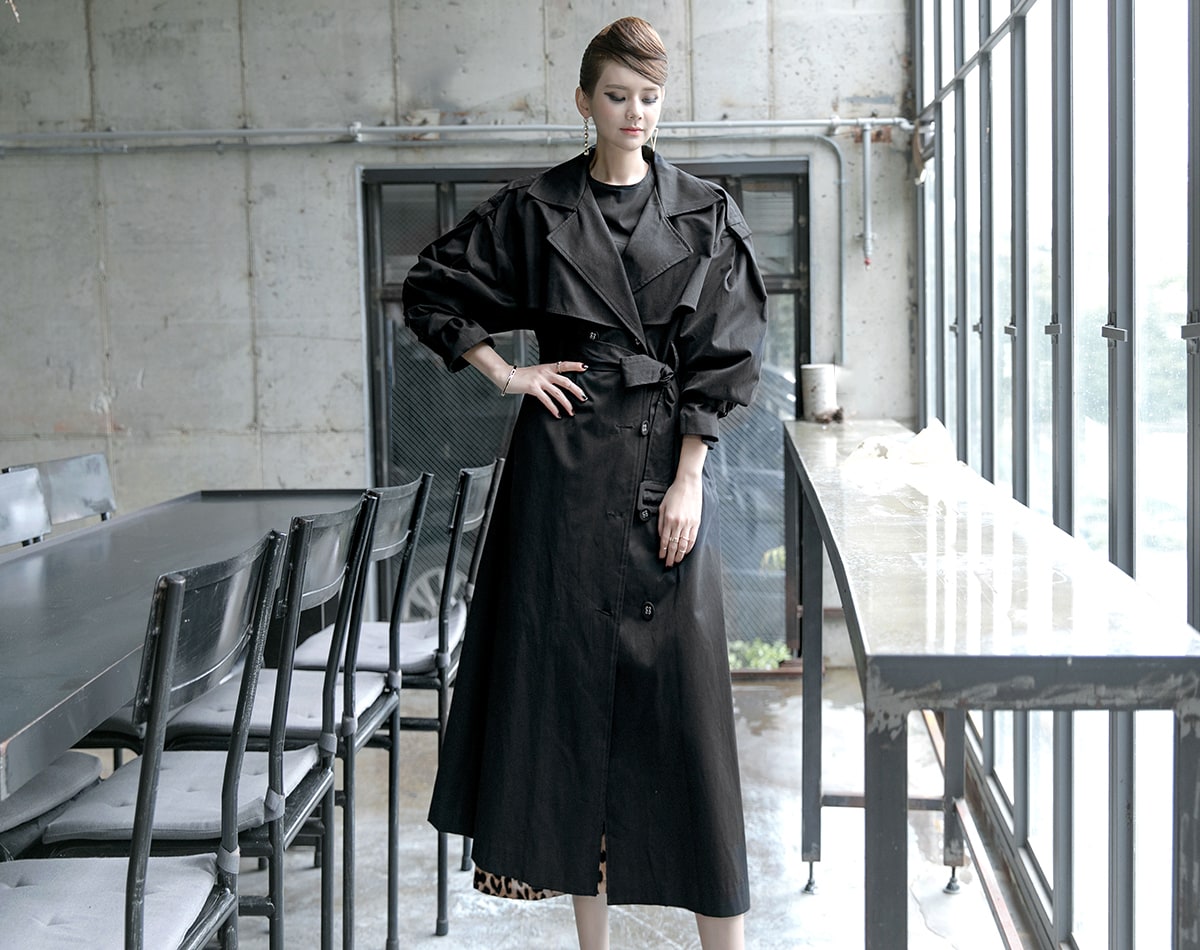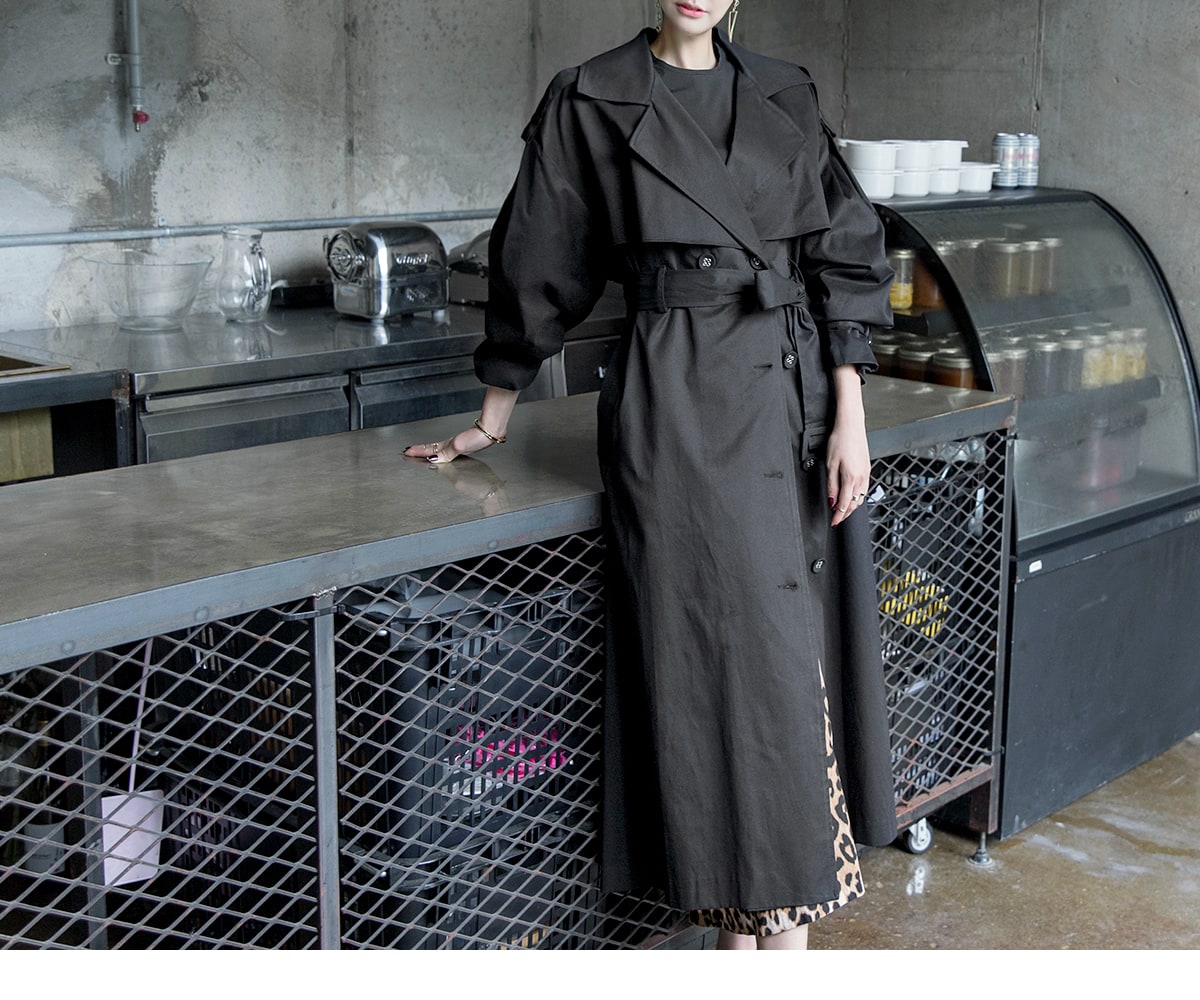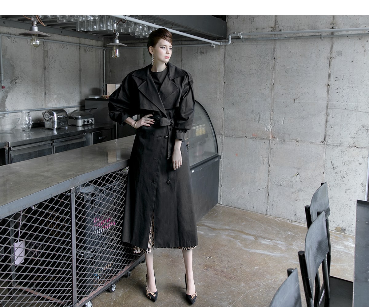 J-5012 러버 트렌치 코트(벨트set) Black