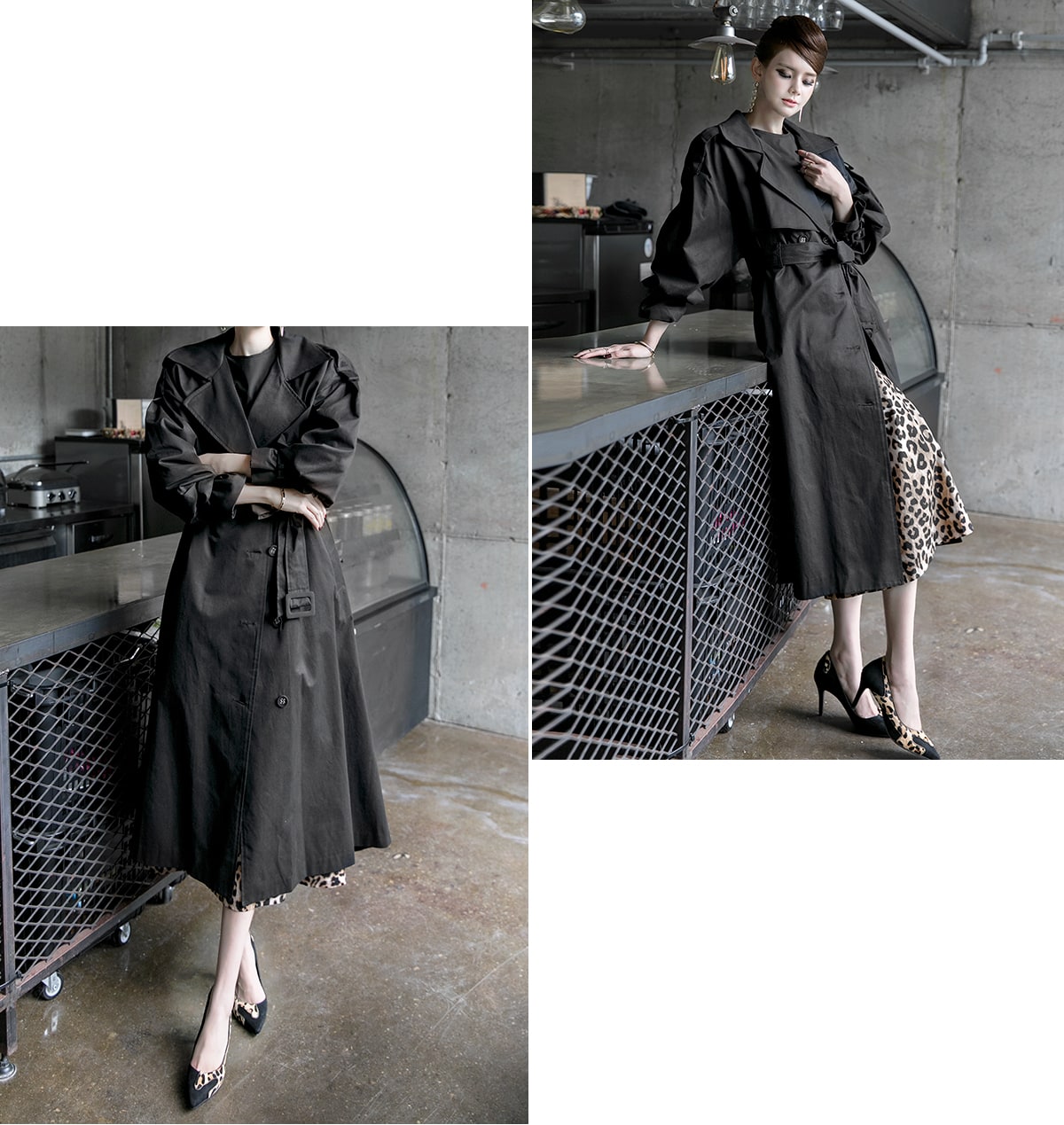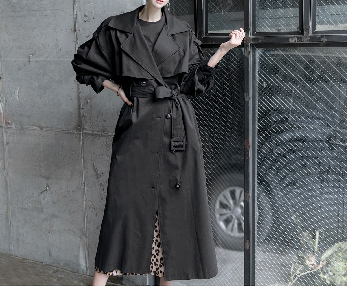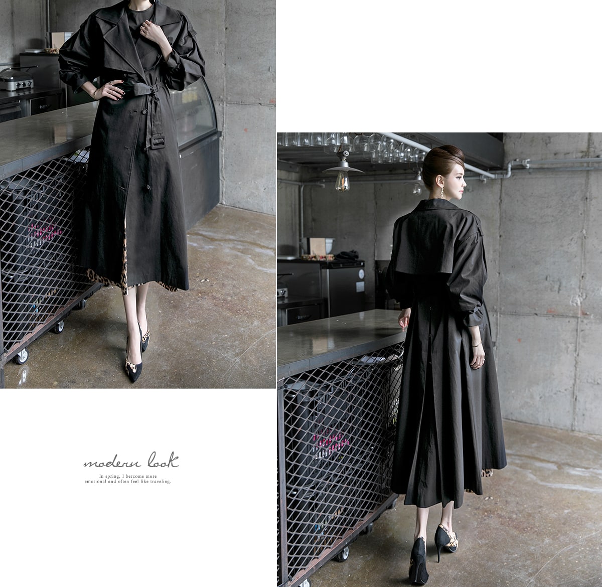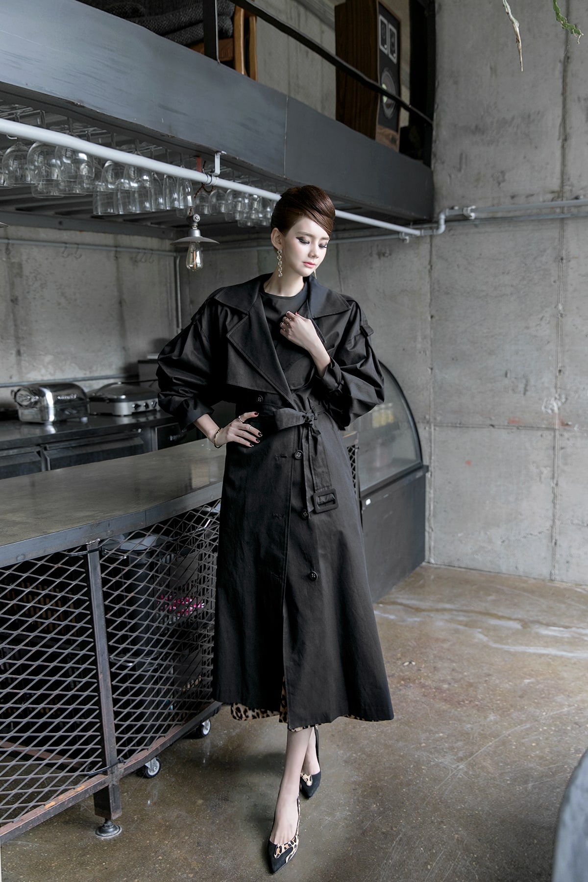 J-5012 러버 트렌치 코트(벨트set) Black