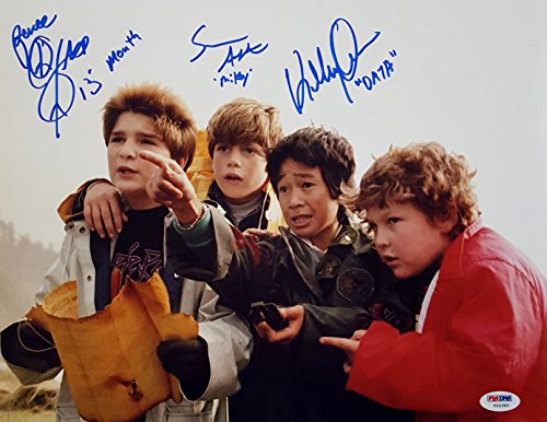 Sean Astin Jonathan Ke Quan Corey Feldman The Goonies Triple Cast Signed 11X14 Photo PSA/DNA (B)
