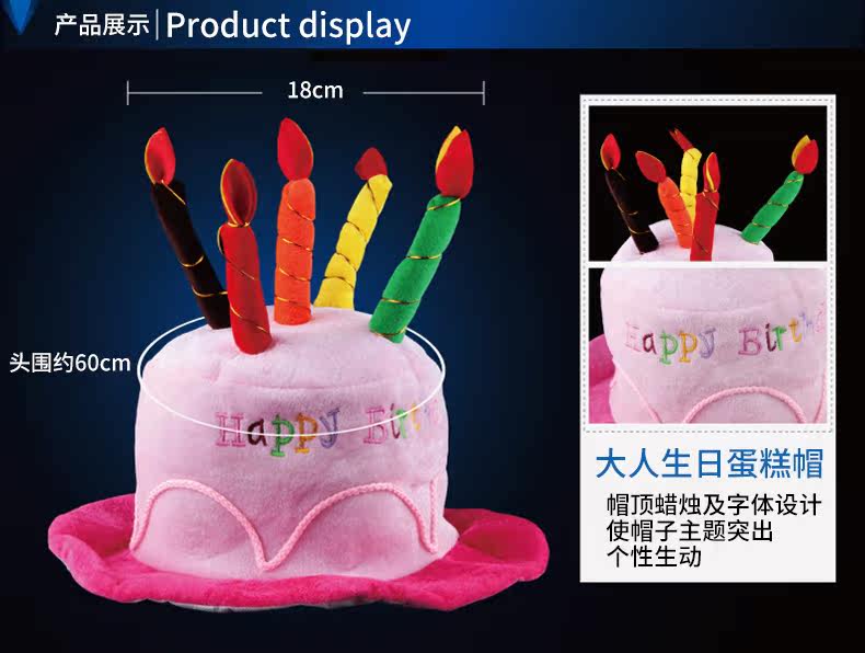 千奇坊生日用品礼物 大人/儿童生日蛋糕帽生日帽子 表演装扮道具