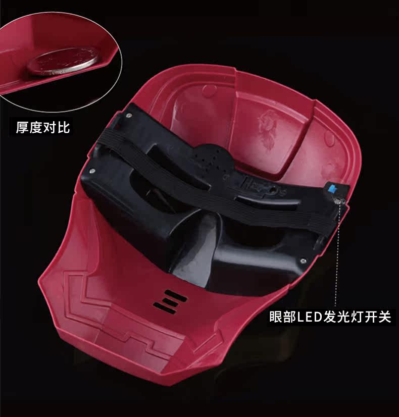 Material: thick plastic + wide bandage straps, light version + Eye LED lights