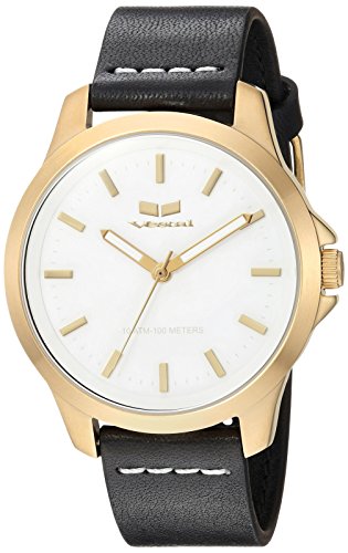Vestal Quartz Stainless Steel and Leather Casual Watch, Color Black (Model: HEI393L07.BK)