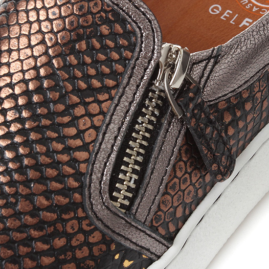 고급스러운 펄감의 무늬피를 사용한 슬립온