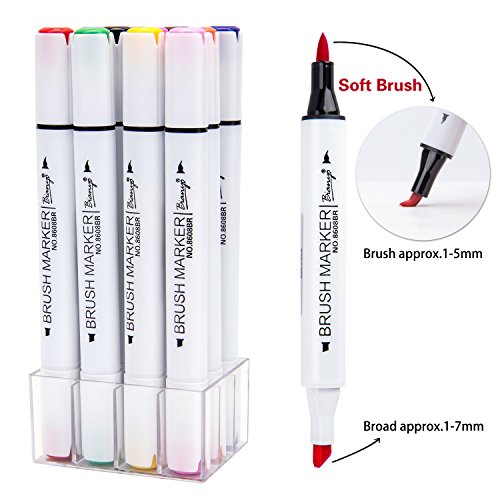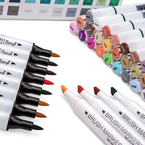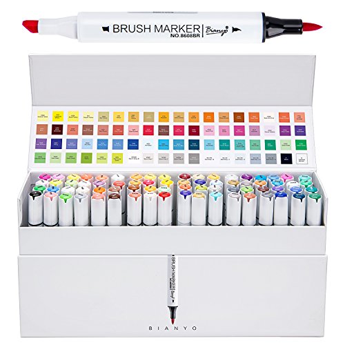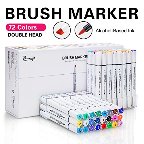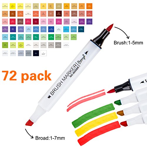 Bianyo Artist Alcohol Dual Marker Pens- Soft Brush and Broad Tips, Art Permanent Sketch Markers for Designing, Drawing, Coloring Skin, 72 Colors