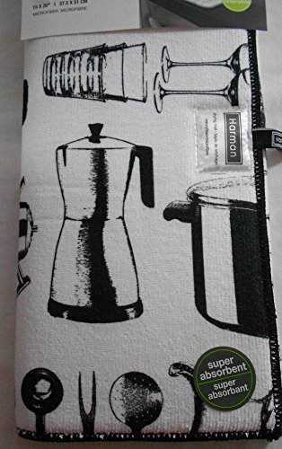 -. Feature : Harmon P.R.Inted Drying Mat / 15 x 20 inches / White with Black Pots & Pitcher Designs / Microfiber / Reversible