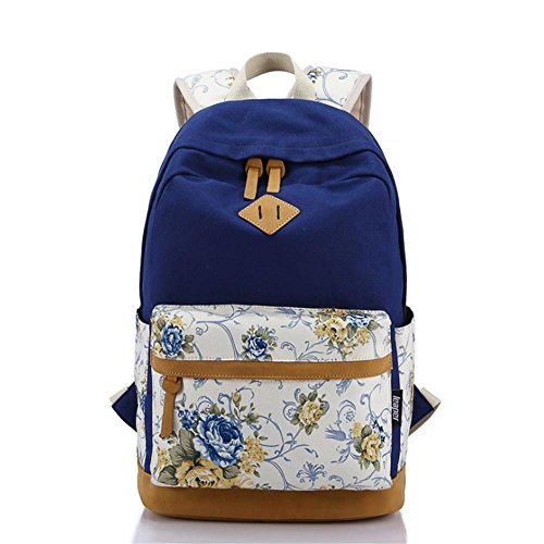 -. Title : Korean Style Canvas Flower Floral Casual Daypacks College Student Satchels, Navy