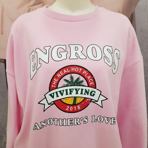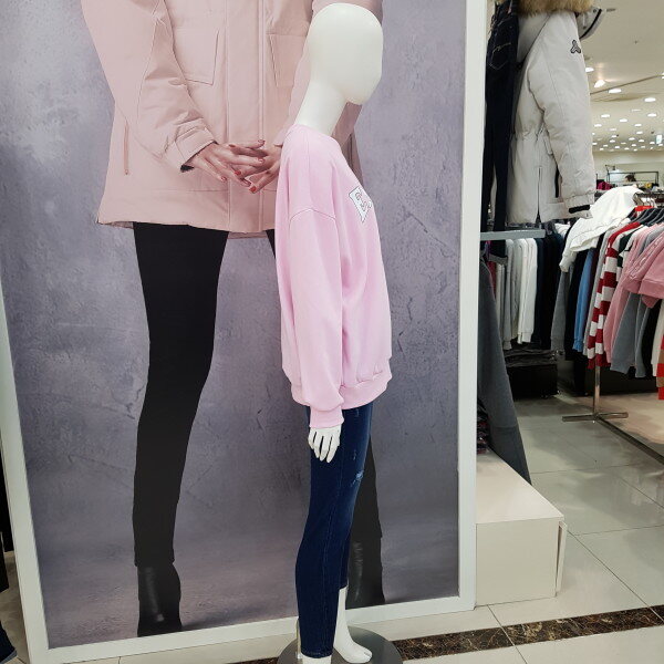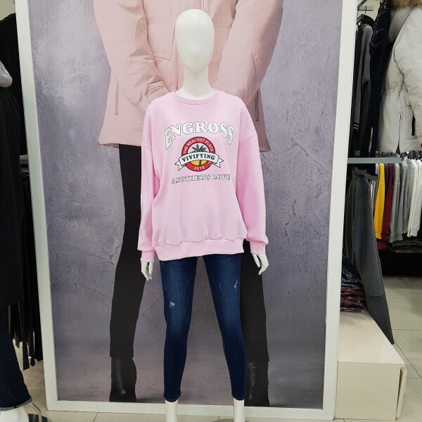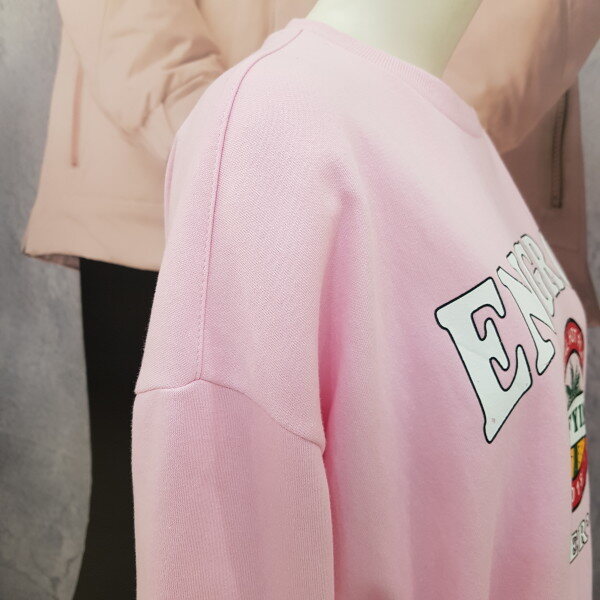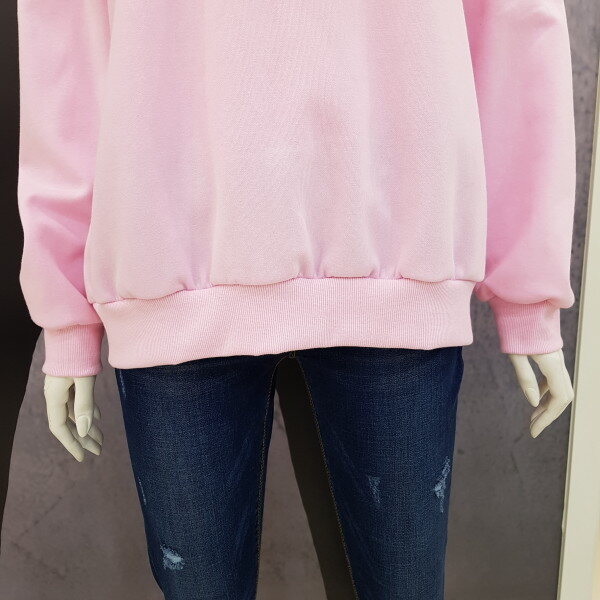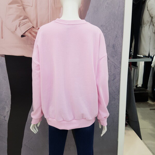 여성용 맨투맨 티셔츠 입니다.핑크색상으로 케쥬얼하게 데님이나 치노팬츠에도 잘 어울리는 아이템 입니다..