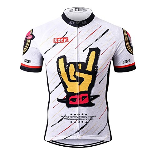 Thriller Rider Sports Mens Rock Music White Mountain Bike Short Sleeve Cycling Jersey Bike Tshirt Medium