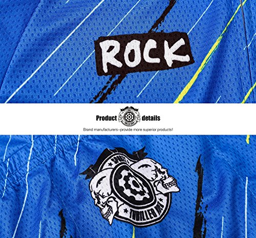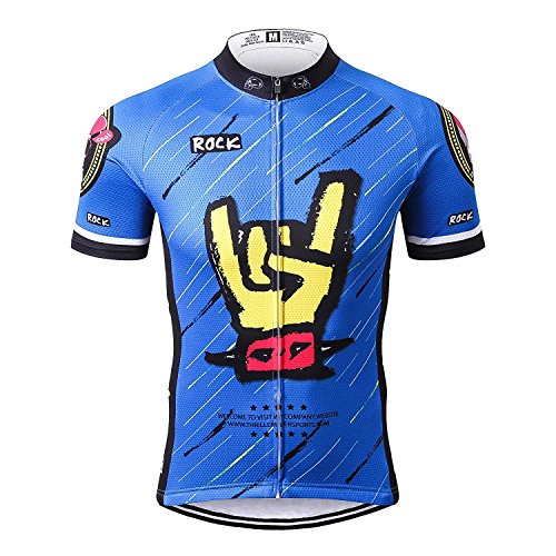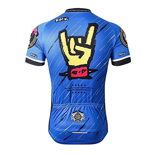 Thriller Rider Sports Mens Rock Music Blue Mountain Bike Short Sleeve Cycling Jersey Bike Tshirt Large