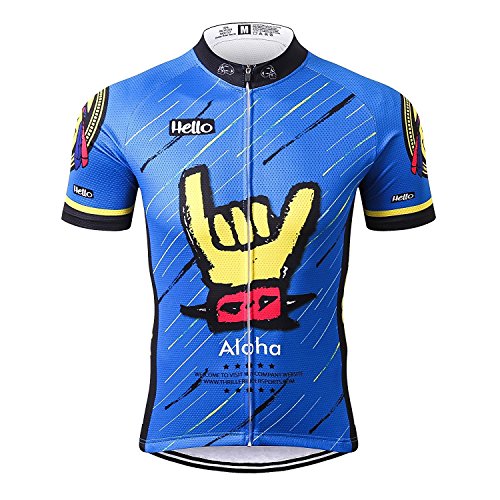Thriller Rider Sports Mens Aloha Blue Mountain Bike Short Sleeve Cycling Jersey Bike Tshirt 2X-Large