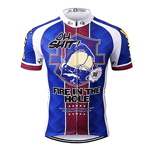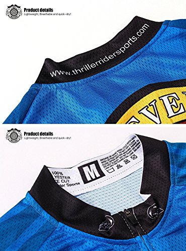 Thriller Rider Sports Mens Funny Blue Mountain Bike Short Sleeve Cycling Jersey Bike Tshirt Medium