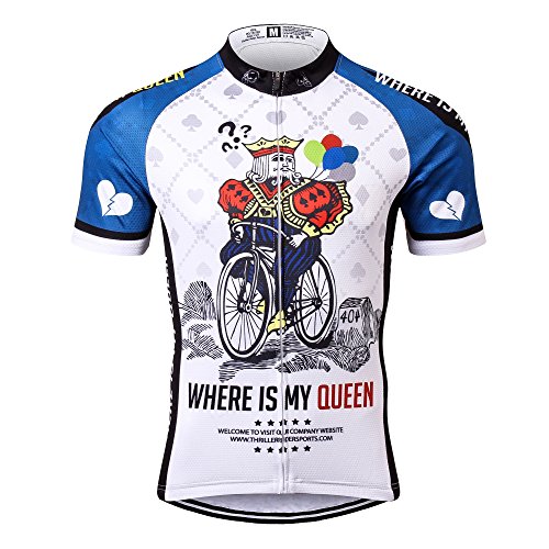 Thriller Rider Sports Mens Where is My Queen Mountain Bike Short Sleeve Cycling Jersey Bike Tshirt Large