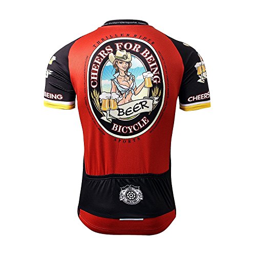 Thriller Rider Sports Mens Cheers for Being Red Mountain Bike Short Sleeve Cycling Jersey Bike Tshirt Medium