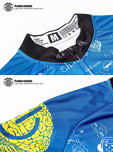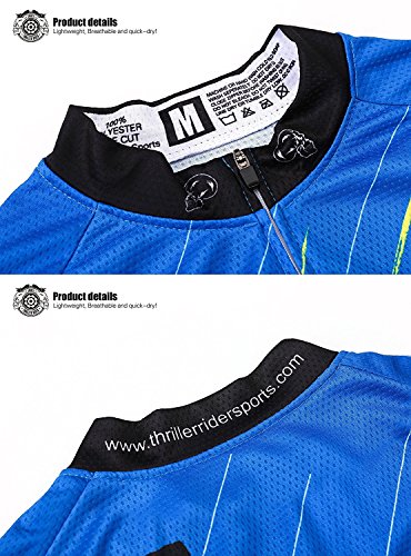 Thriller Rider Sports Mens Funny Blue Mountain Bike Short Sleeve Cycling Jersey Bike Tshirt Large