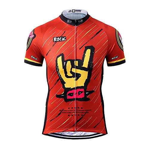 Thriller Rider Sports Mens Rock Music Red Mountain Bike Short Sleeve Cycling Jersey Bike Tshirt Medium