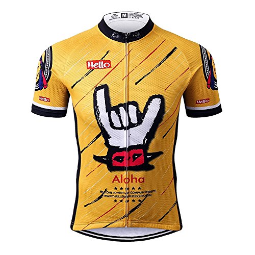Thriller Rider Sports Mens Cheers for Being Yellow Mountain Bike Short Sleeve Cycling Jersey Bike Tshirt X-Large