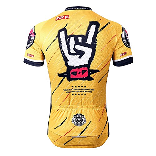 Thriller Rider Sports Mens Rock Music Yellow Mountain Bike Short Sleeve Cycling Jersey Bike Tshirt Large