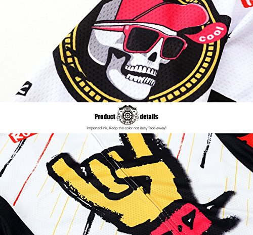 Thriller Rider Sports Mens Rock Music White Mountain Bike Short Sleeve Cycling Jersey Bike Tshirt Large